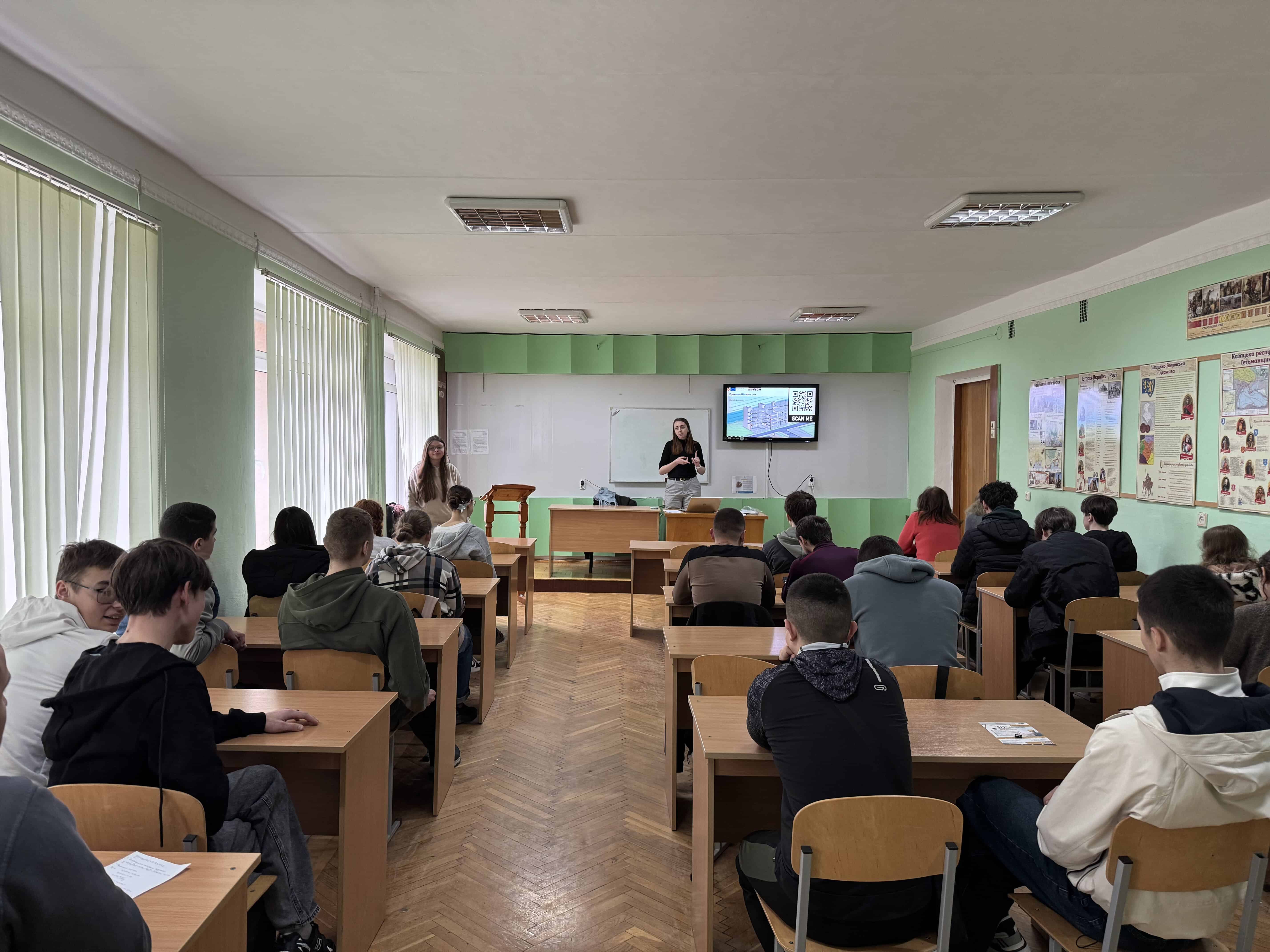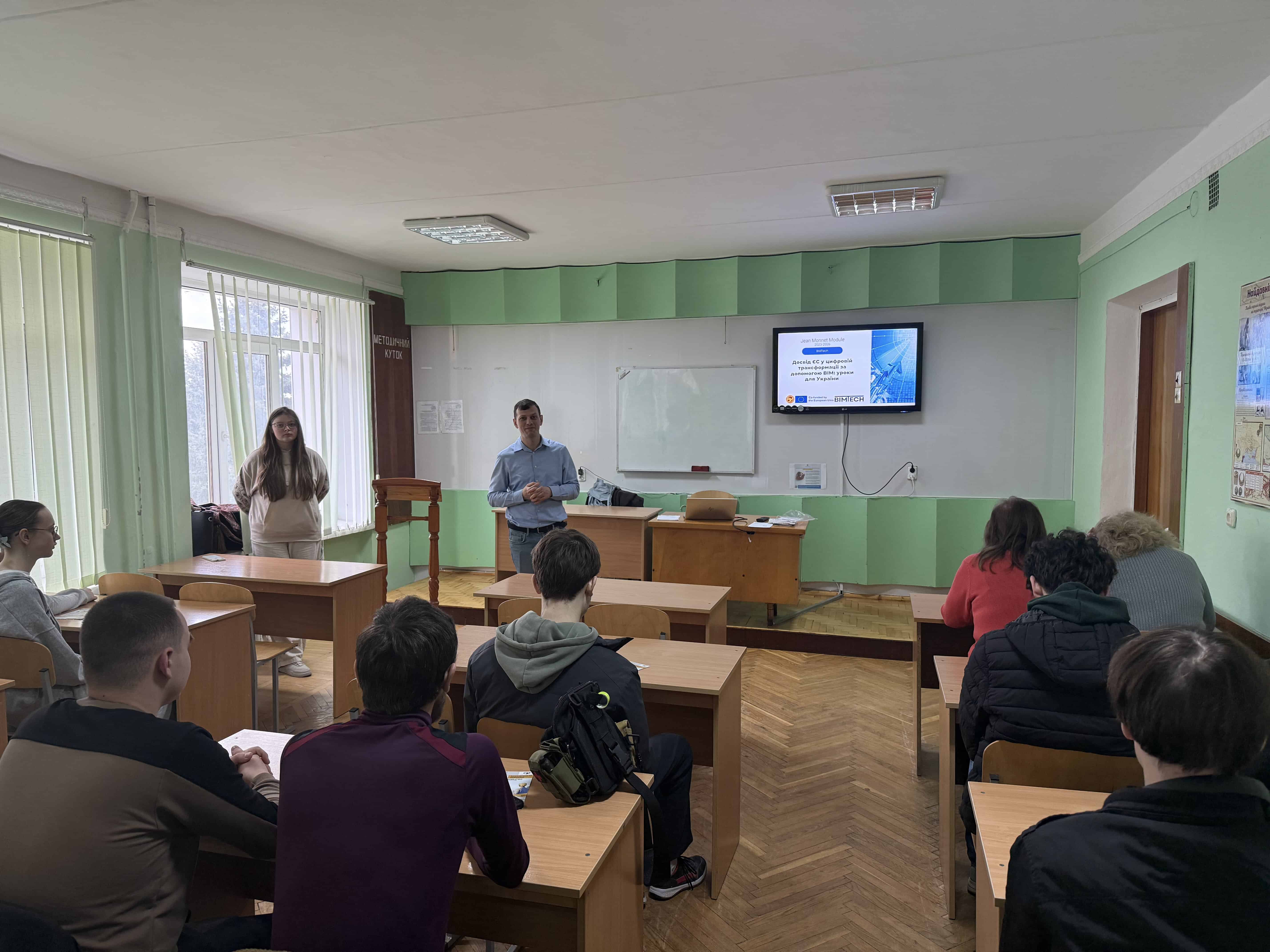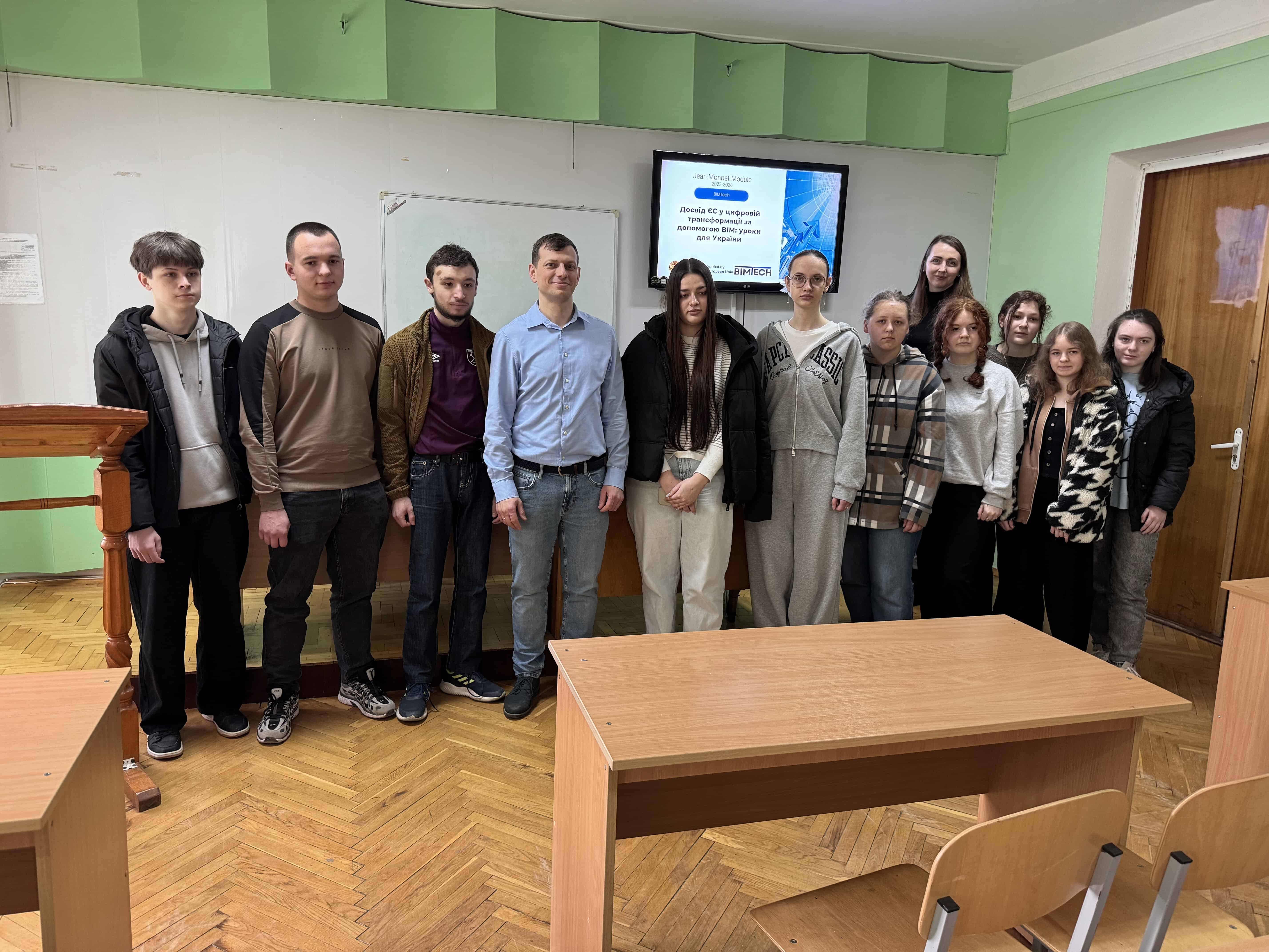 2 квітня 2026 року в межах реалізації міжнародного європейського проєкту Erasmus+ (модуль Jean Monnet) «Досвід ЄС у цифровій трансформації за допомогою БІМ: уроки для України» відбувся 6-годинний тренінг “Вступ до БІМ – майбутнього будівельної галузі” для студентів 2-го та 4-го курсів Бучацького фахового коледжу спеціальності G19 «Будівництво та цивільна інженерія». Захід провели координатор проєкту Володимир Ясній та виконавиця проєкту Ольга Мещерякова.